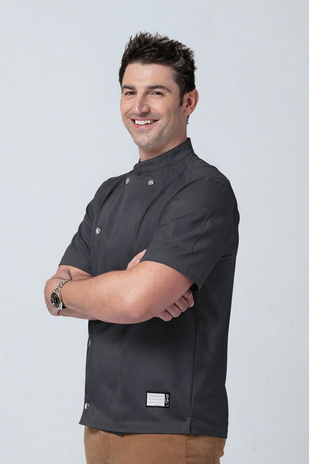 Elevate your culinary experience with the Helt Studio Midtown Chef Coat, expertly crafted from our in-house lightweight tech fabric, weighing just 7oz. Designed for chefs who demand both style and performance, this modern, tailored-fit chef coat offers a sleek, single-breasted design with convenient snap buttons for easy on and off.